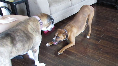 We have a neighbor who has had a boxer penned up for a year. Layla spent the brutal winter in the pen and the heat of the summer locked in that same dirty pen. When I look out the front of my house, I see Layla's pen and it's broken my heart since they built it. By Thanksgiving, the family wasn't even letting her out to use the restroom and barely noted her existence when they fed and watered her. I am not exaggerating when I say that there were times I had tears in my eyes as I watched her stare at her house from that cage. I started to plan a way to kidnap her. I wish I was kidding. If I thought I could get away with it, Layla would have been rescued a long time ago. I tried to convince my sister to take her over Thanksgiving break but couldn't get anyone on board with my deceitful plan. Never in my life have I wanted to take something that didn't belong to me but I couldn't keep looking at this sad puppy in the cage across the street.  On Tuesday night, Lauren spoke to the teen who lives at Layla's house and was told they were looking for a new home for her. If they didn't have her placed by the weekend, Layla would be going to a shelter. Lauren confessed I had been plotting a kidnapping and knew I would help find Layla a new home, even if it meant we would be inheriting another dog. After questioning the adults in the house about Layla's temperament and spending some time working with her, I talked to Greg about adding her to our family. He has also been upset about her living conditions and quickly agreed.